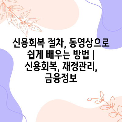 신용회복 절차, 동영상으로 쉽게 배우는 방법에 대해 알아보겠습니다.