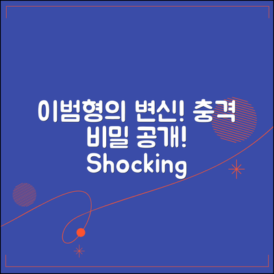 이범형 이범형의 숨겨진 비밀을 알아보세요!
